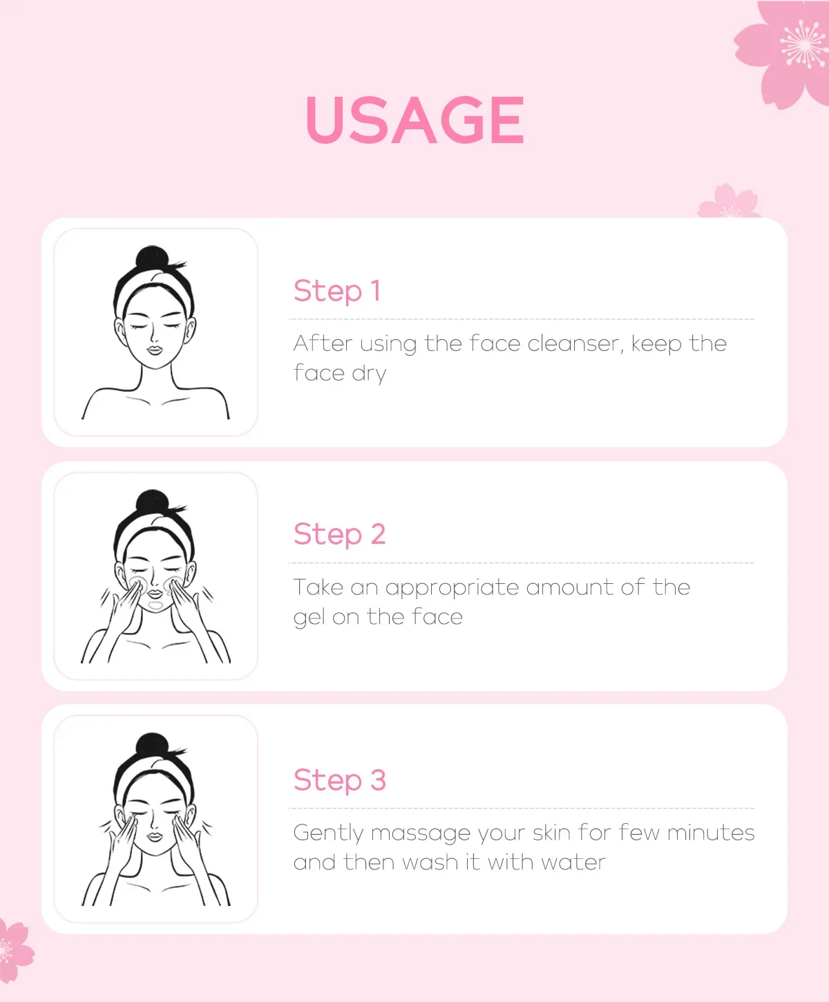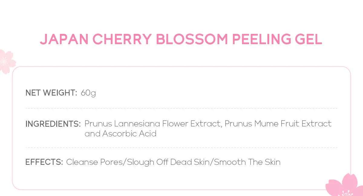 Formulado com extratos naturais de flor de cerejeira japonesa (Prunus Lannesiana) e fruta de ume (Prunus Mume), o produto promove uma esfoliação suave, sem agredir a pele, deixando-a limpa, fresca e hidratada.