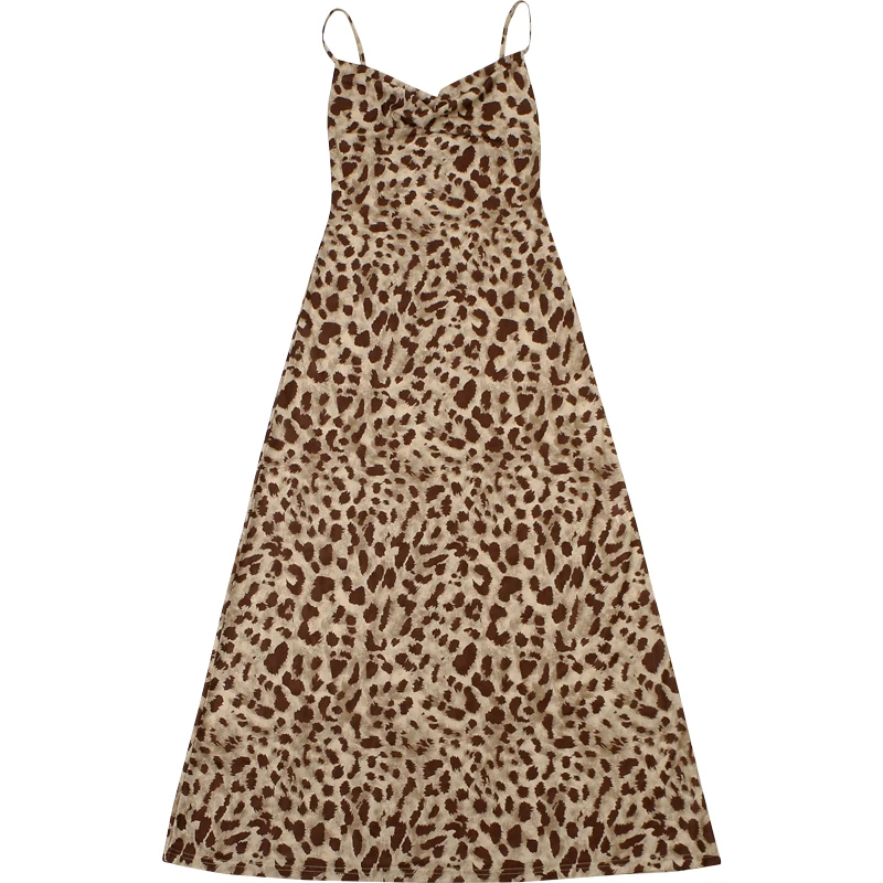 Com estampa de leopardo marcante, decote drapeado e alças finas estilo espaguete, ele valoriza as curvas com um caimento suave e sofisticado.